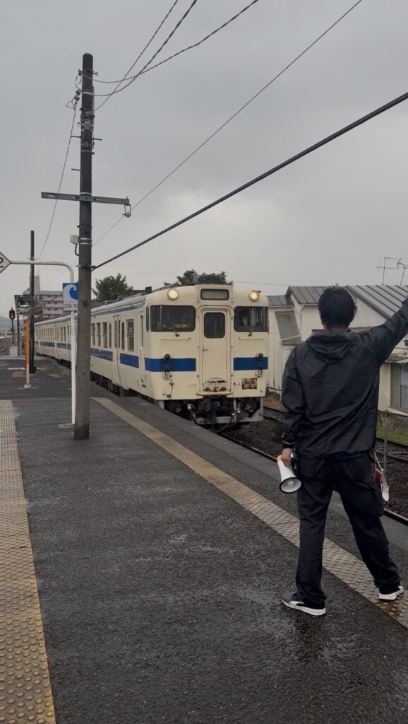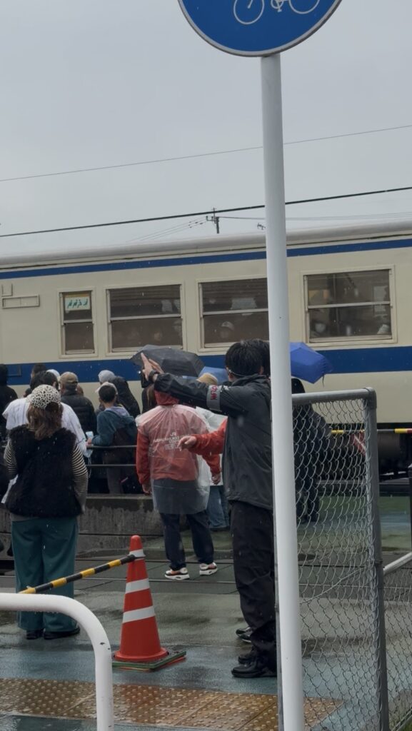 そんな中、JR九州の社員の方々が雨に打たれながら、丁寧に誘導されており、