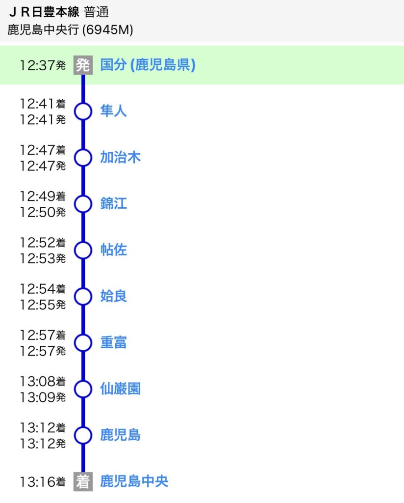 往路:普通列車で鹿児島中央へ