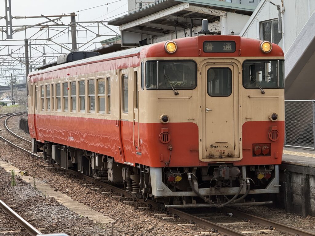 👉 ホームにはキハ40(ツートンカラー)